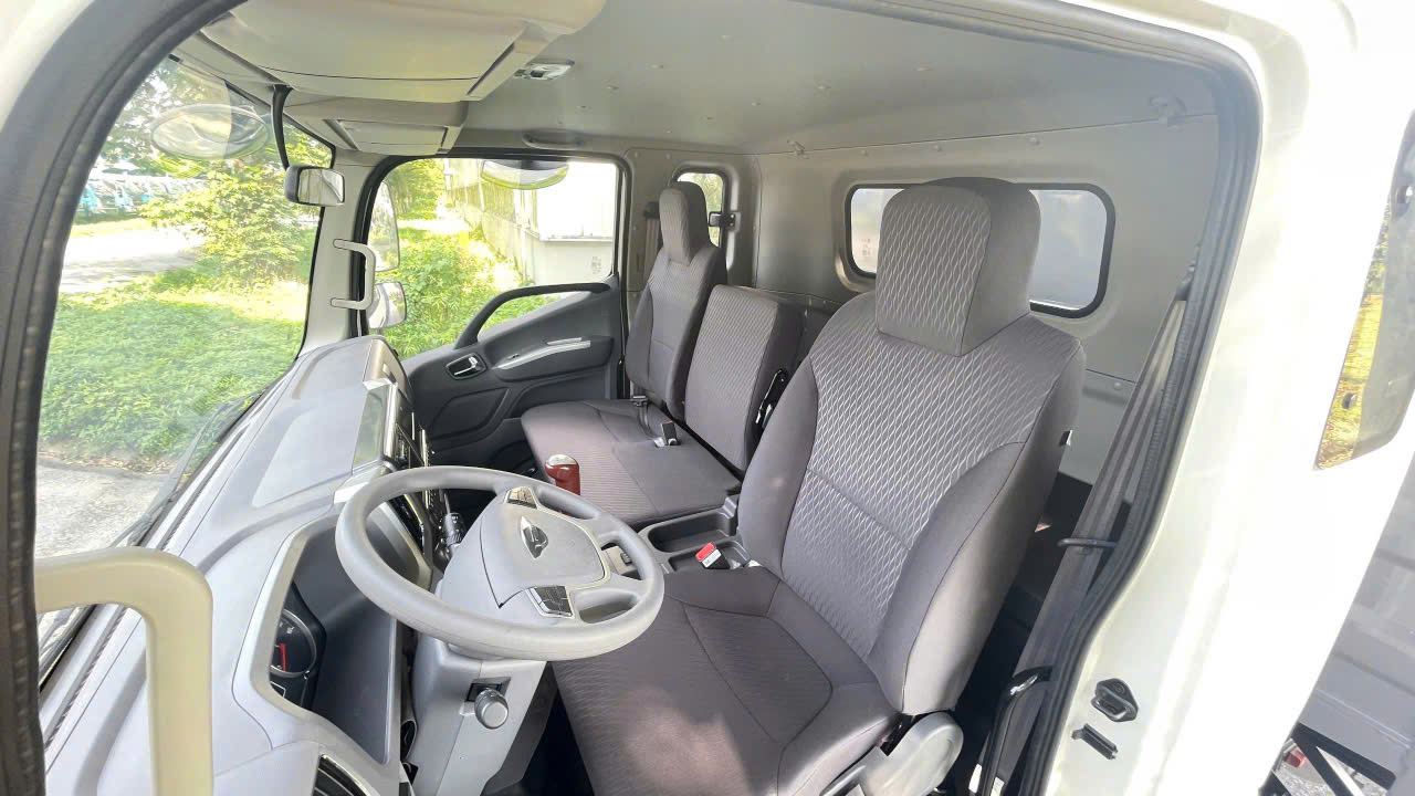 Đặc biệt, ghế ngồi sử dụng công nghệ Hàn Quốc, bọc nỉ cao cấp, có độ đàn hồi tốt và thông thoáng, hạn chế mỏi lưng trong quá trình vận hành đường dài. Thiết kế cabin dạng đứng kết hợp hệ thống gương chiếu hậu hợp lý giúp mở rộng tầm nhìn, tăng độ an toàn và giảm điểm mù khi lái.