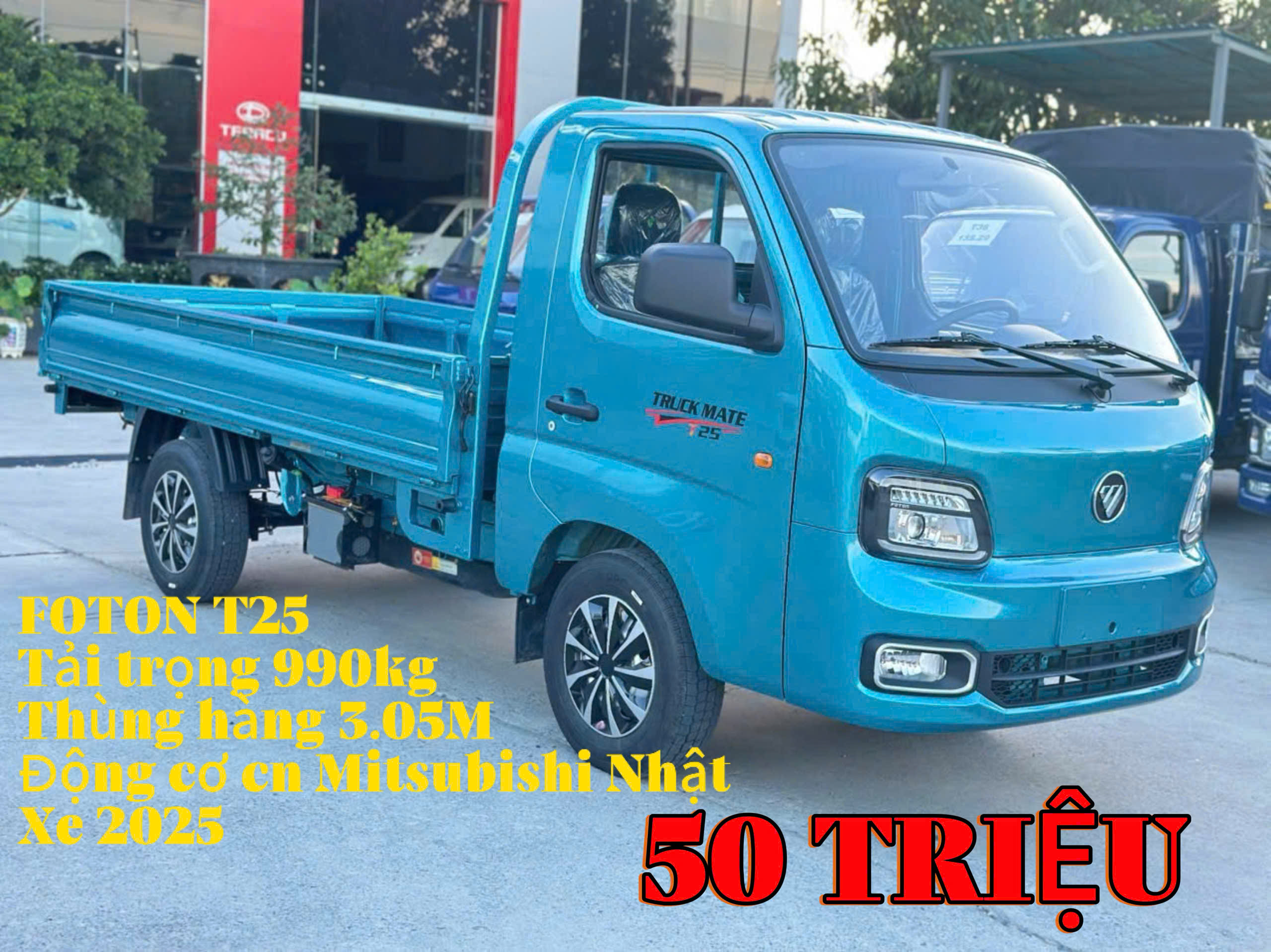 Foton T25 MB-Tải trọng 990kg. Kích thước tổng: 4970x1705x2465mm. Thùng hàng dài: 3050x 1565x1670mm